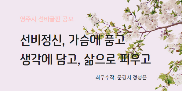 영주시는 지난 2일 ‘2021년 봄편 선비글판’ 문안으로 ‘선비정신, 가슴에 품고 생각에 담고 삶으로 피우고’를 최우수작으로 선정했다.