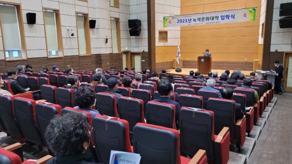 [한국Q뉴스] 2021년 강진군 녹색문화대학 입학식이 지난 25일 농업기술센터 대강당에서 열렸다.