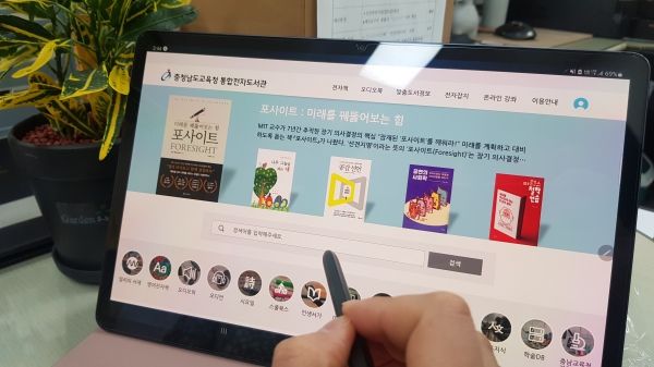 통합전자도서관은 지난해 19개 충남교육청 산하 공공도서관을 하나로 모아, 6만여 종의 전자 도서 정보 서비스를 제공한다.