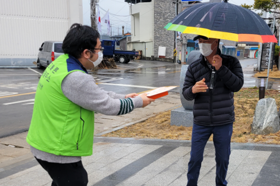 군은 산서면 일원에서 코로나19 확산 예방을 위한 철저한 발열체크와 방역수칙을 준수한 가운데 장수군 도로명주소 홍보 리플릿과 타월 등을 주민들에게 배부하고 도로명주소 사용을 독려했다.