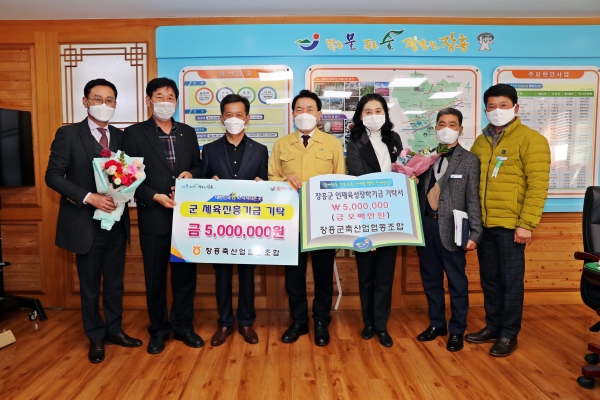 [한국Q뉴스] 장흥군은 지난 3일 장흥축산농협에서 인재육성장학기금 500만원과 체육진흥기금 500만원을 기탁했다고 전했다.