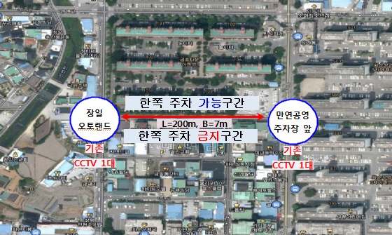 시행 예정인 도로는 장일오토랜드에서 만연공영주차장 앞까지 200m 구간이다.
