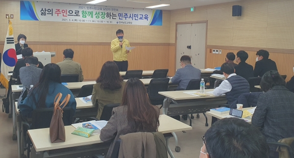 전라남도교육청은 4일 전라남도교육청 체육교육센터에서 교육지원청 민주시민교육 업무 담당자 44명이 참석한 가운데 ‘2021. 민주시민교육 담당자 연찬회’를 갖고 이런 내용의 ‘2021 학교민주시민교육 기본계획’을 밝혔다.