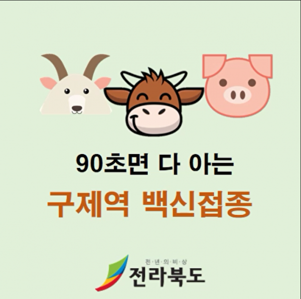 전북도 관계자는 “90초 분량 구제역 백신접종 동영상을 제작해 생산자단체, 축협과 시군에 배포하는 등 홍보활동에도 노력하겠다”며 “구제역 청정 전북 달성을 위해 관계기관들은 백신 접종에 적극적인 협조를 부탁드린다”고 당부했다.