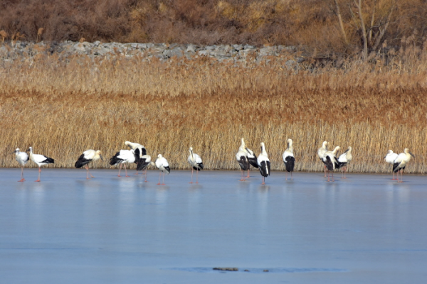 국립생태원 연구진은 총 35마리의 황새가 화성습지에서 살고 있는 것을 확인했으며 이 중 26마리가 한 자리에 모여 집단으로 월동하는 모습을 관찰했다.