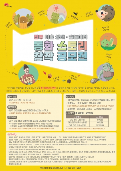 전주시는 오는 6월 18일까지 야호 생태·숲놀이터를 소재로 한 동화스토리 창작 공모전을 연다.