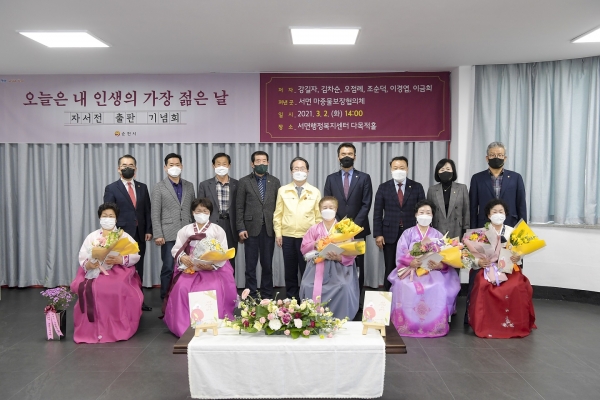 [한국Q뉴스] 순천시는 서면 마중물보장협의체의 주민자치형 특화사업으로 출간된 어르신들의 자서전 ‘오늘은 내 인생의 가장 젊은 날’ 출판기념회를 지난 2일 서면행정복지센터 다목적홀에서 개최했다.