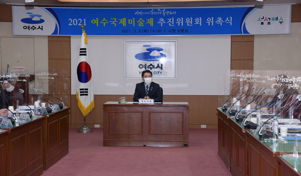 [한국Q뉴스] 여수시는 9일 시청 상황실에서 2021 여수국제미술제 추진위원 위촉식을 열고 행사 성공 개최를 다짐했다.