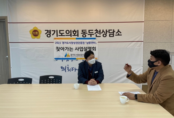 [한국Q뉴스] 경기도의회 유광혁 의원은 지난 10일 도의회 동두천상담소에서 경기도 시장상권진흥원 남동센터장과 경기도 소상공인 환경개선사업 관련 면담을 가졌다.