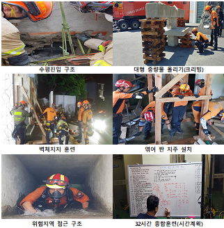 첫째 주에는 지진·폭발 등으로 인한 건축물 붕괴사고에 대비해 인명탐색과 구조기법, 구조물안정화 등에 대한 교육을 진행한다.