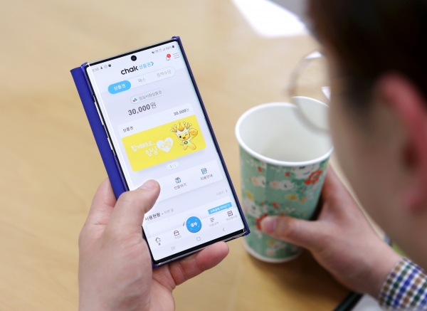 카드 상품권 사용을 위해서는 휴대폰의 플레이스토어나 앱스토어에서‘지역상품권 chak’앱을 설치하고 본인인증을 거친 후 회원가입을 하면 간편하게 카드를 신청할 수 있다.