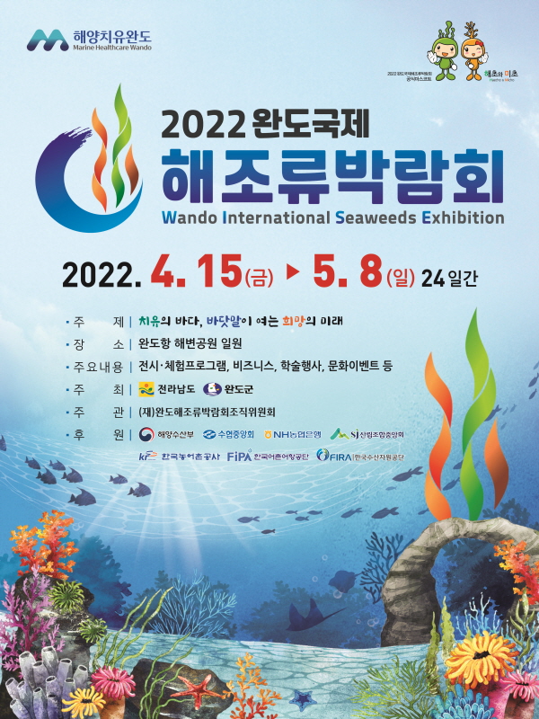 2022 완도국제해조류박람회는 ‘치유의 바다, 바닷말이 여는 희망의 미래’라는 주제로 2022년 4월 15일부터 5월 8일까지 24일간 완도항 일원에서 개최된다.