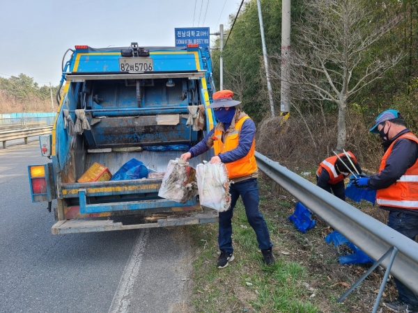 이번 대청소는 장기간 방치된 여순간 국도 불법투기 쓰레기 수거와 도로에 쌓인 비산먼지 저감을 위한 노면 청소차량도 함께 운행했다.