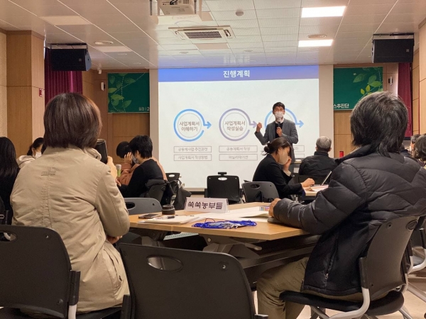 수업은 코로나19 방역 지침을 준수한 가운데 농업인상생플랫폼 1층 회의실에서 대면으로 진행되며 1강 사업계획서 작성의 이해, 2강~5강 그룹별 사업계획수립 토의, 6~7강 사업계획서 작성, 8강 사업계획서 발표 등으로 구성됐다.