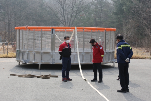 이날 인천대공원 산불진화헬기 담수용 저수지 운반 현장에는 고기연 산림항공본부장과 최도수 인천시청 주택녹지국장, 서치선 인천대공원사업소장을 비롯한 여러 관계자가 참석해 헬기 운반과정을 지켜보면서 유관기관 업무협력의 중요성과 산불방지에 만전을 기해줄 것을 당부했다.