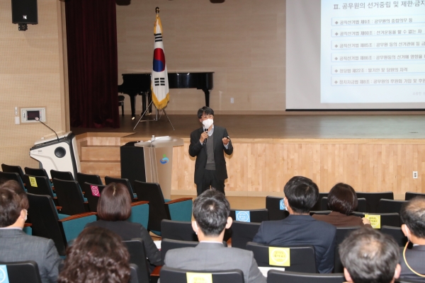 이경구 총무과장은 “올바른 공직선거에 대한 인식과 업무추진 중 발생할 수 있는 위반 행위를 사전에 예방할 수 있는 좋은 계기가 됐다.