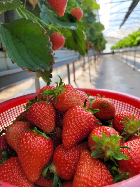 시설딸기 재배시 LPG연소식 탄산가스 시용구에서 농도는 900~1100ppm으로 대조구 300~600ppm 보다 500~600ppm 높게 유지 됐으며 온도는 대조구 대비 2~3℃ 높았다.