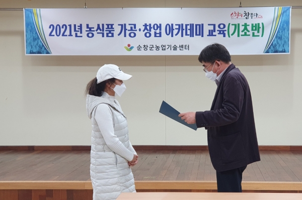 [한국Q뉴스] 순창군이 지난 12일 농업인들의 농외소득 창출을 위한 농식품 가공·창업 아카데미 수료식을 가졌다.