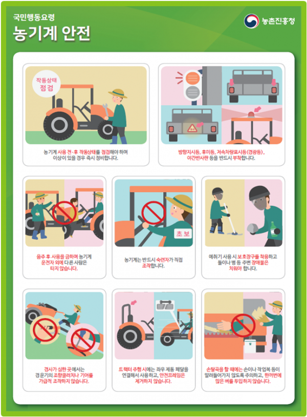 특히 음주 후 농기계 조작은 매우 위험하니 절대 삼가야 한다.