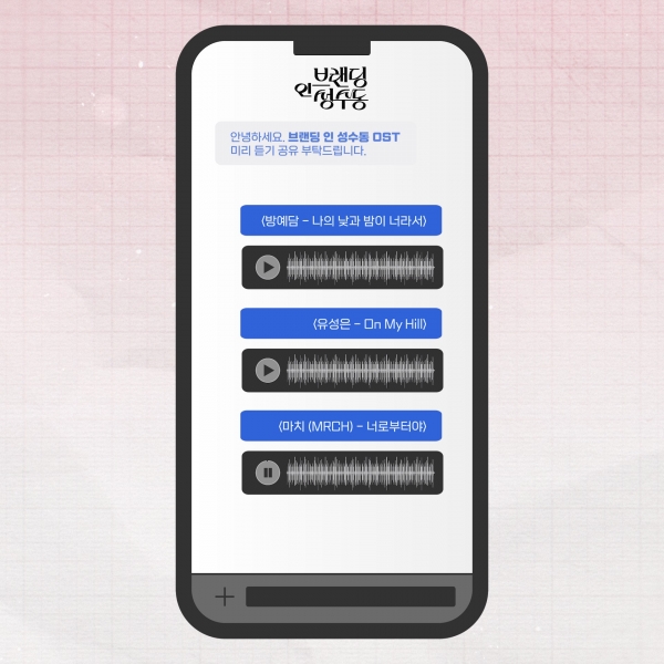 OST 제작사 ㈜블렌딩은 5일 공식 유튜브 채널을 통해 ‘브랜딩 인 성수동’ 의 OST 하이라이트 메들리를 공개했다.