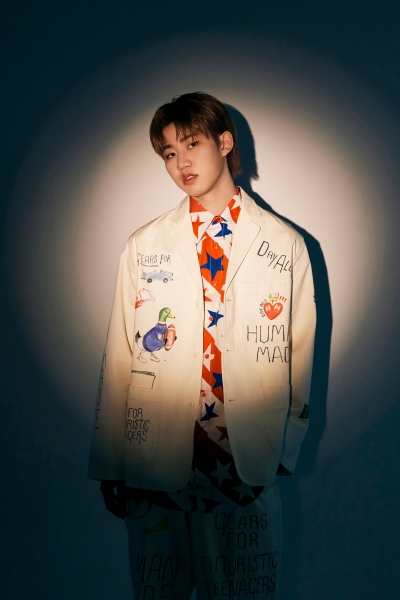 그는 화이트와 레드로 컬러 배치를 한 셔츠와 펜으로 직접 그림을 그려 완성한 듯한 재킷을 완벽하게 소화해 내며 힙합계를 이끌어 갈 새로운 아티스트의 탄생을 알렸다.