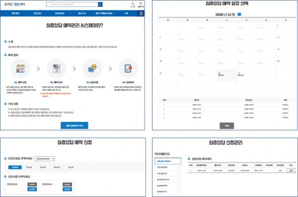 심층상담 예약 서비스는 취업·진로에 어려움을 겪는 청년들이 원하는 일자와 시간에 비대면으로 최대 50분에 걸쳐 체계적이고 지속적인 전문상담을 제공하는 온라인 서비스이다.