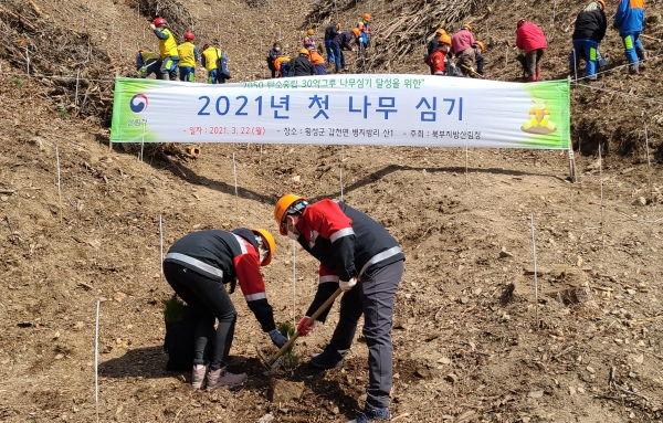 [한국Q뉴스] 북부지방산림청은 탄소중립 선언과 관련해 2050년까지 30억 그루 나무심기 원년을 맞아 이산화탄소 배출 0%를 만들기 위한 첫 나무심기 행사를 3월 22일 강원도 횡성에서 지방산림청장을 비롯한 관계 공무원과 지역주민이 참여해 나무심기 의지를 다졌다.