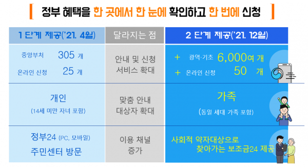 또한, 본인뿐 아니라 함께 거주하고 있는 가족의 서비스까지 확인할 수 있도록 ‘보조금 24’ 맞춤 안내 대상자를 확대한다.