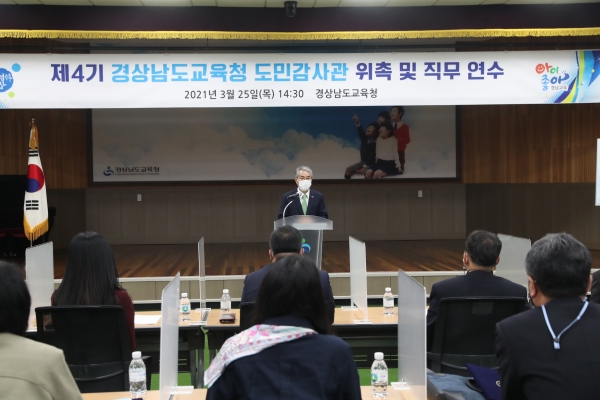 [한국Q뉴스] 경상남도교육청은 25일 본청 강당에서 제4기 도민감사관 29명에게 위촉장을 수여했다.