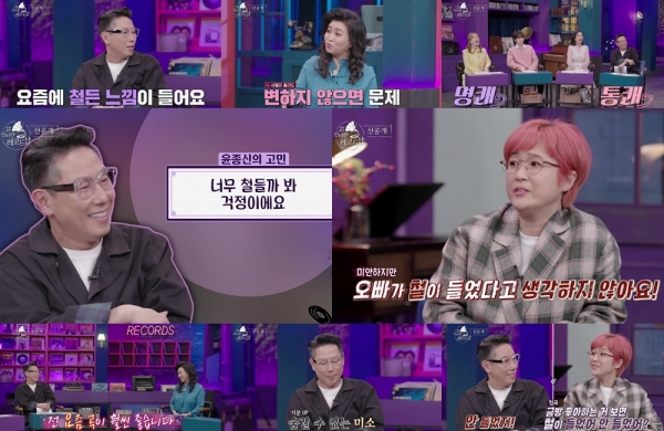 [한국Q뉴스] ‘신비한 레코드샵’에서 요즘 철드는 게 걱정이라는 윤종신이 음악인으로서 느끼는 현실적인 고민을 토로한다.