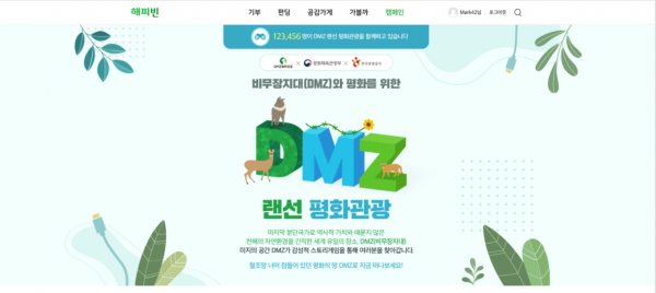 디지털 환경에 익숙한 MZ세대 등은 네이버 해피빈 굿액션에서 온라인 게임 ‘이름 없는 땅’에 접속해 쉽게 가볼 수 없는 DMZ를 가상으로 여행하고 DMZ 평화를 기원하는 메시지를 남김으로써 접경지역 자연생태계 등을 지원하는 기부금 모금에 참여할 수 있다.