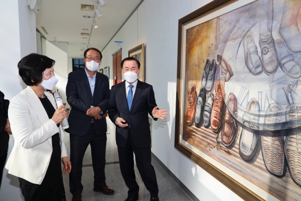 김지철 교육감은 “오롯이 교직의 길을 걸어가는 작가가 틈틈이 해온 작품 활동의 결과를 교육청 갤러리 이음에서 전시하게 된 것을 축하드린다”며 “작가의 인생과 삶에 대한 시선이 온통 담겨있는 작품들을 볼 수 있는 행복한 시간이었다”고 말했다.