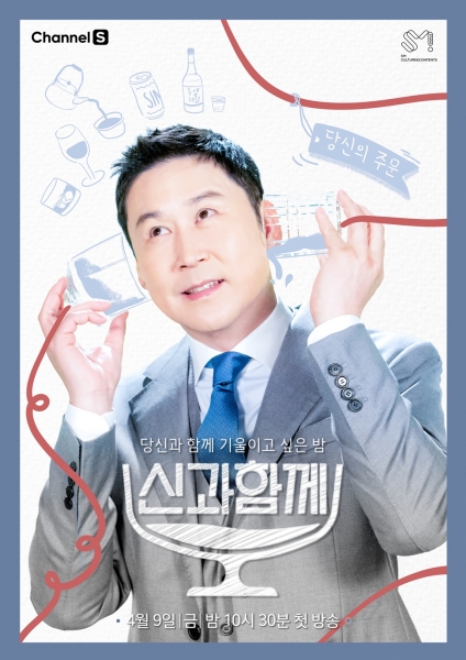 오는 4월 9일 금요일 밤 10시 30분 첫 방송되는 채널S의 새 예능 프로그램 ‘신과 함께SM C&C STUDIO 제작/ 진선미 연출) 측은 31일 마스터 신동엽이 다양한 인생 이야기가 담긴 술잔에 귀를 기울이는 모습의 메인 포스터를 공개했다.