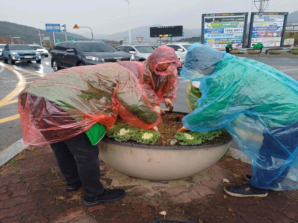 특히 밀양 시내로 들어오는 관문인 긴늪사거리 도로변 화분에 추위에 강한 꽃양배추를 심어, 차량 통행이 많은 사거리가 겨울철에도 활기를 유지할 수 있도록 힘을 보탰다.