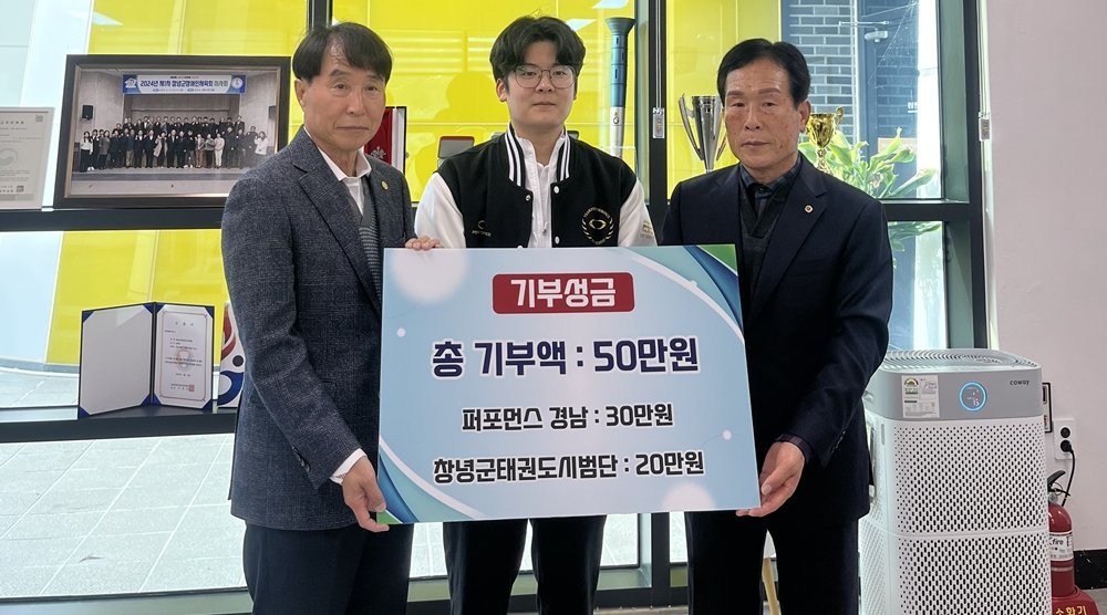 [한국Q뉴스] 창녕군장애인체육회는 지난 27일 태권도 전문 시범단체인 ‘퍼포먼스경남’과 ‘창녕군태권도시범단’으로부터 상금 50만 원을 기부받았다고 밝혔다.