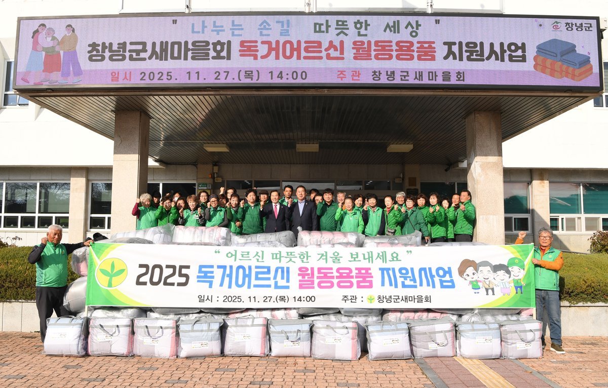 [한국Q뉴스] 창녕군새마을회는 지난 27일 창녕군청 본관 정문 현관에서 2025년 독거어르신 월동용품 지원사업 전달식을 진행했다.