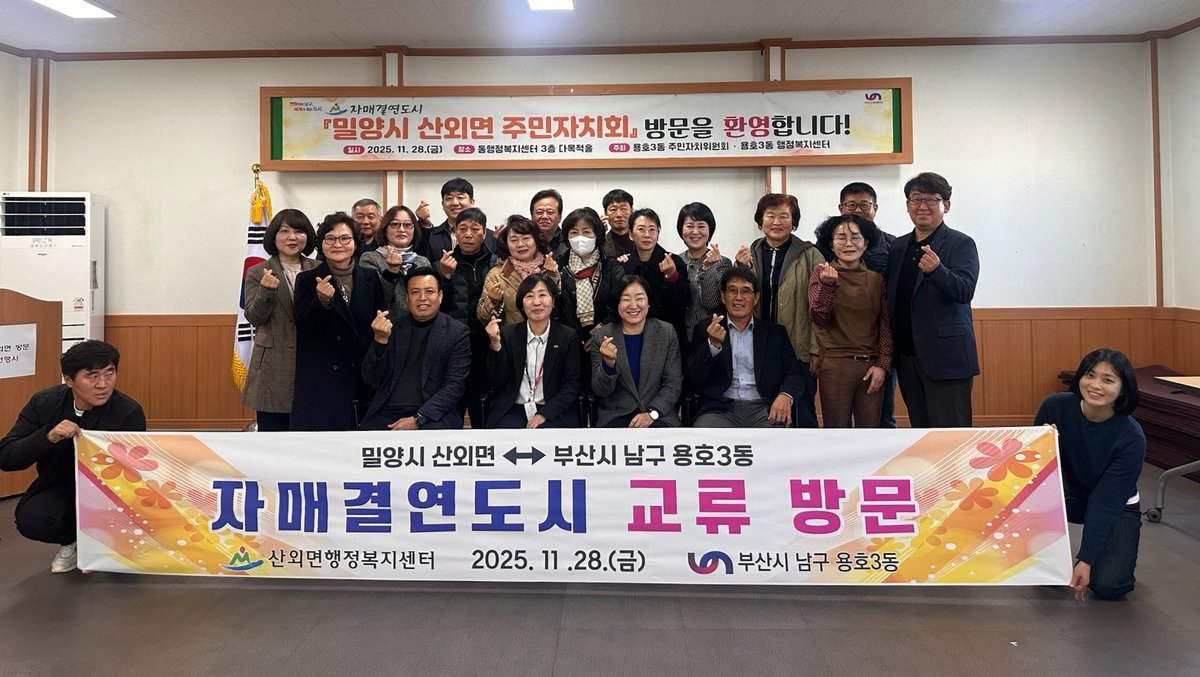 [한국Q뉴스] 밀양시 산외면은 28일 산외면 주민자치회와 부산광역시 남구 용호3동을 방문해 지역 농산물 홍보와 상호 교류 활성화를 위한 교류 행사를 펼쳤다.