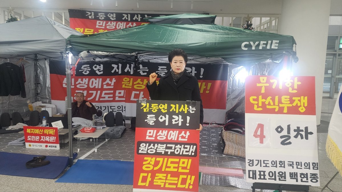 [한국Q뉴스] 경기도의회 경제노동위원회 남경순 의원은 28일 민생예산 원상복구’를 촉구하며 단식 4일 차에 돌입한 백현종 경기도의원의 농성장을 직접 방문해 격려와 강력한 지지 의사를 밝혔다.