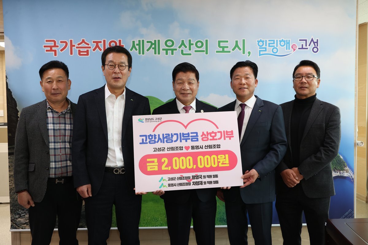 [한국Q뉴스] 고성군은 12월 2일, 고성군 산림조합과 통영시 산림조합이 고향사랑기부제 취지에 동참하기 위해 각각 200만 원을 상호기부했다고 밝혔다.