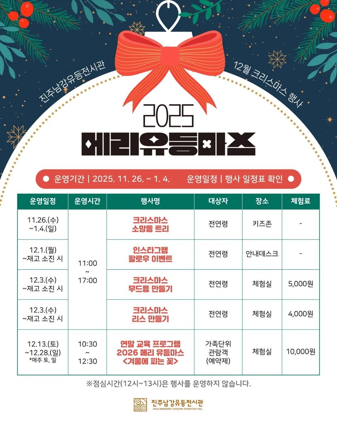 이와 함께 크리스마스 시즌에 맞춘 교육 프로그램 ‘2025 메리유등마스’도 운영한다.