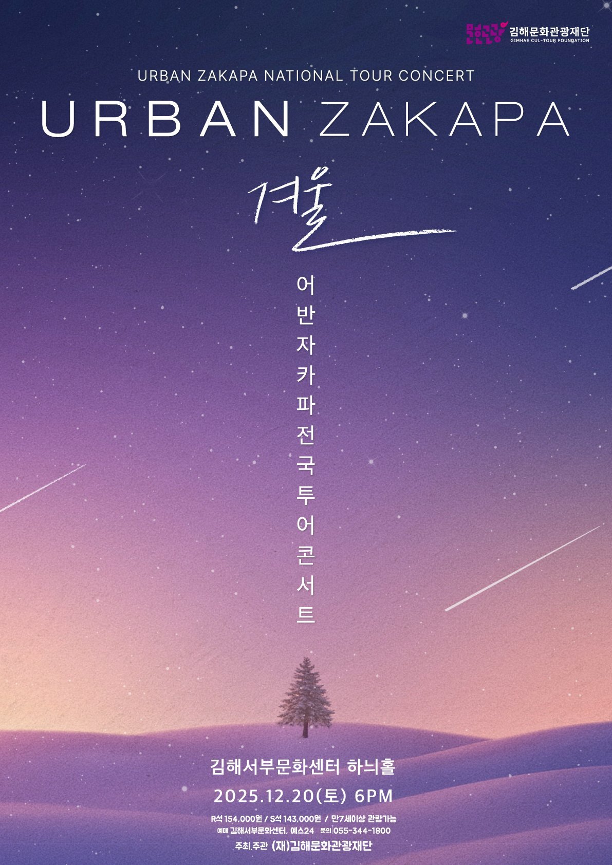 [한국Q뉴스] 국보급 감성 그룹 어반자카파가 오는 12월 20일 김해문화관광재단 김해서부문화센터 하늬홀에서 2025 전국투어 콘서트 ‘겨울’을 개최한다.