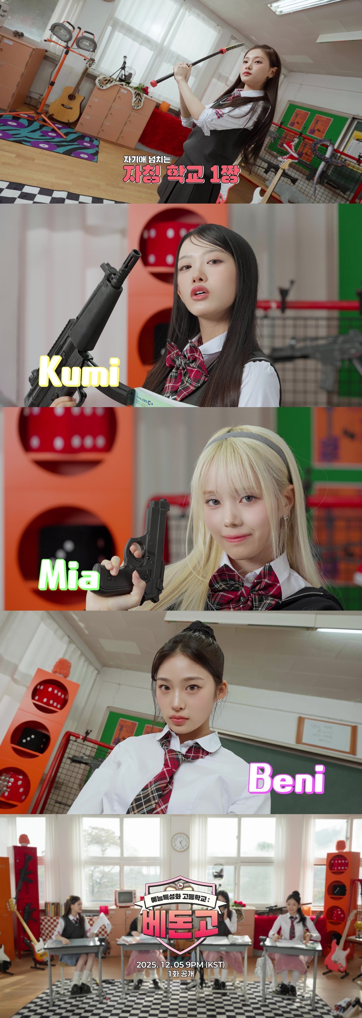 자기애 넘치는 자칭 학교 1짱 이현, 초긍정 똑순이 학교 최고 우등생 쿠미, 50만 팔로워 쇼핑러버 인플루언서 미아, 할 말은 다 하는 이 구역의 인싸 베니까지 각기 다른 콘셉트를 소화하며 다채로운 개성을 드러냈다.