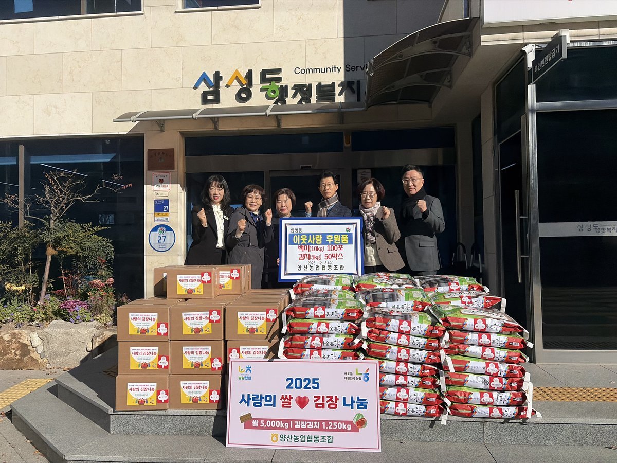 양산농협은 매년 관내 돌봄이웃을 위해 다양한 기부활동을 펼치고 있으며, 올해도 어김없이 사랑과 정성이 담긴 쌀과 김장김치 나눔을 통해 이웃사랑을 실천하고 있다.