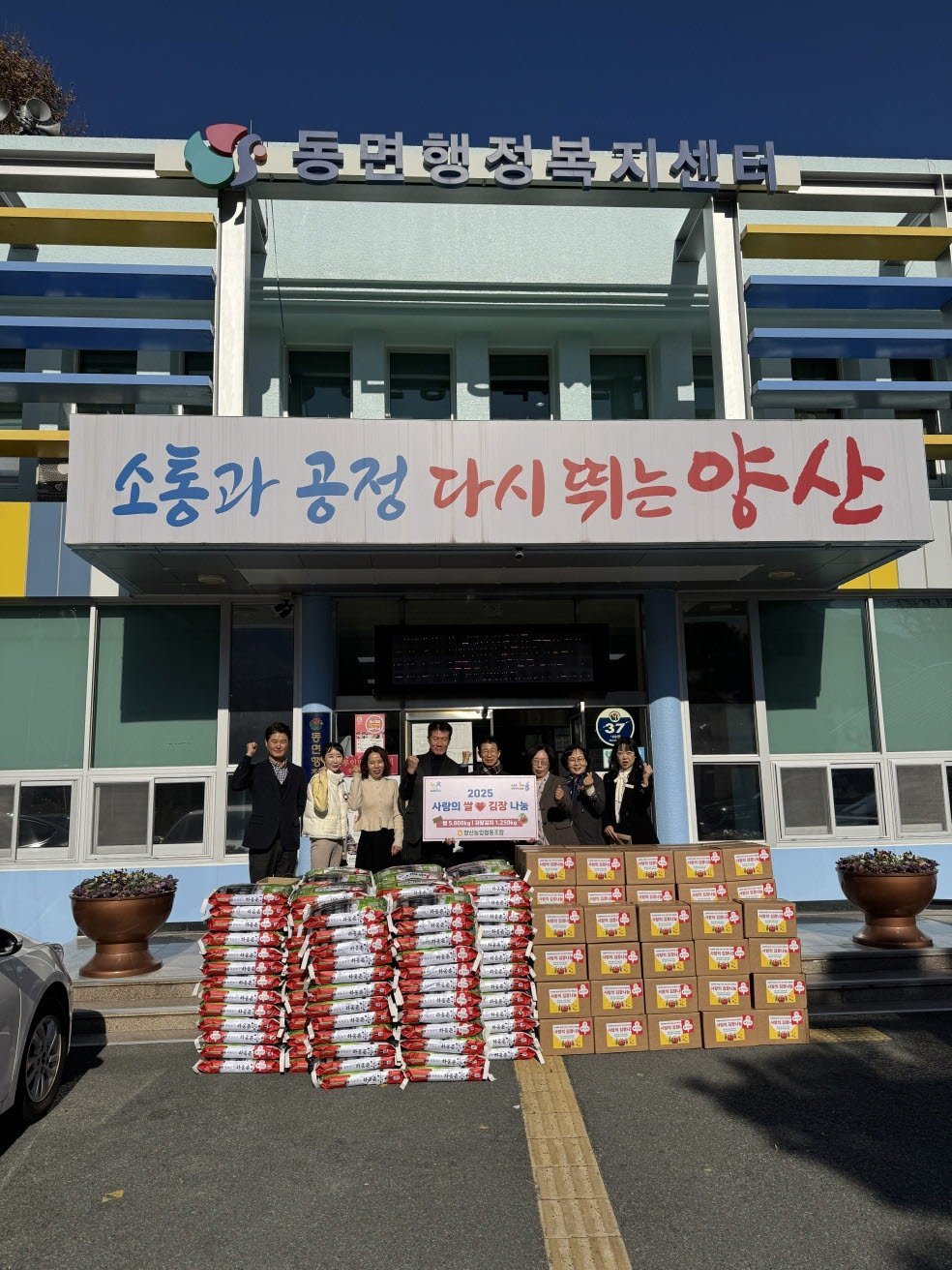 [한국Q뉴스] 양산농협은 지난 3일 연말을 맞아 지역 내 어려운 이웃을 돕기 위해 쌀 100포와 김치 50박스를 동면행정복지센터에 기탁했다.