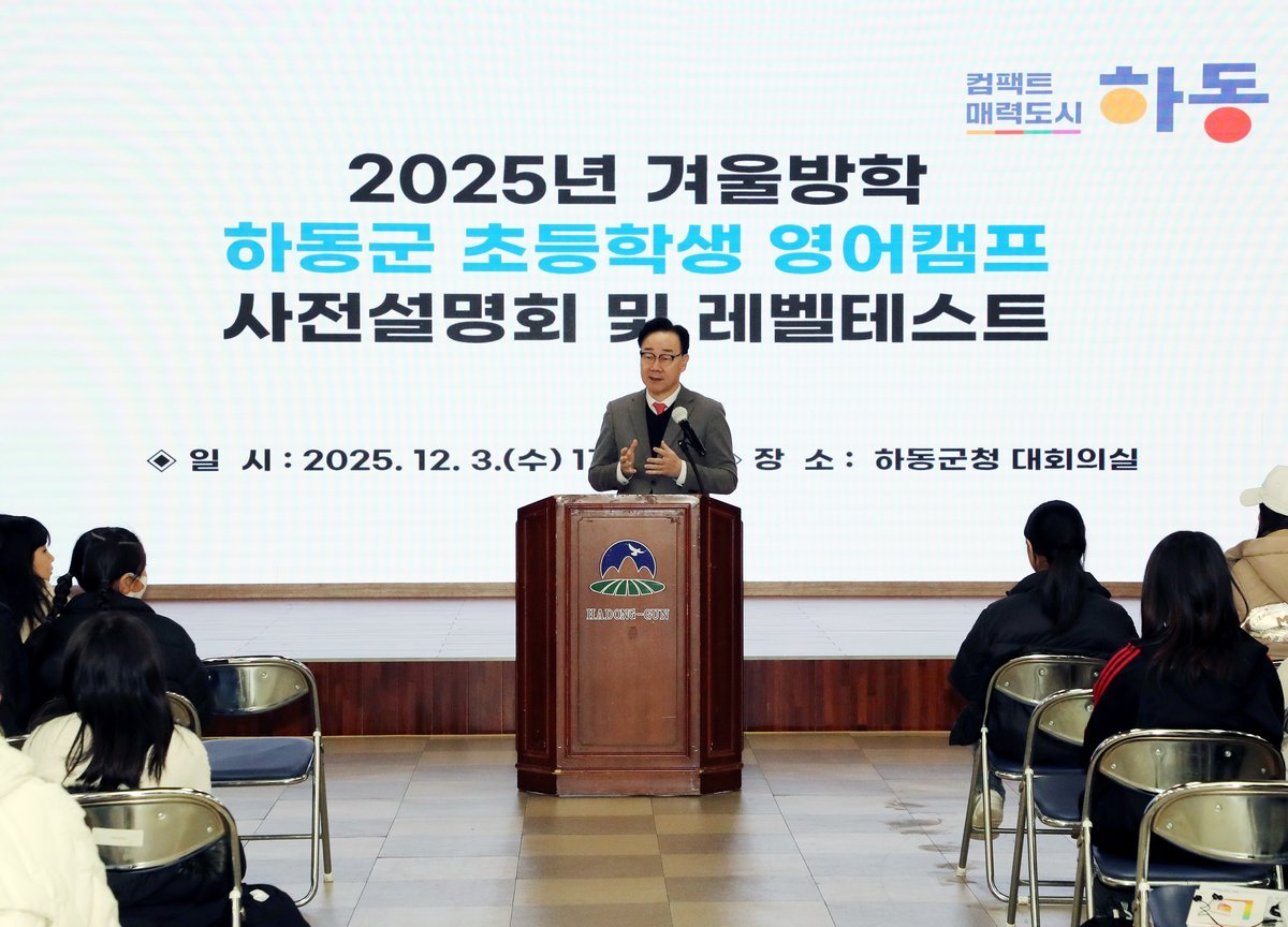 [한국Q뉴스] 하동군이 지난 3일 군청 대회의실에서 ‘2025 겨울방학 초등학생 영어캠프 사전 설명회’를 개최하며, 지역 학생들의 글로벌 역량 강화에 시동을 걸었다.