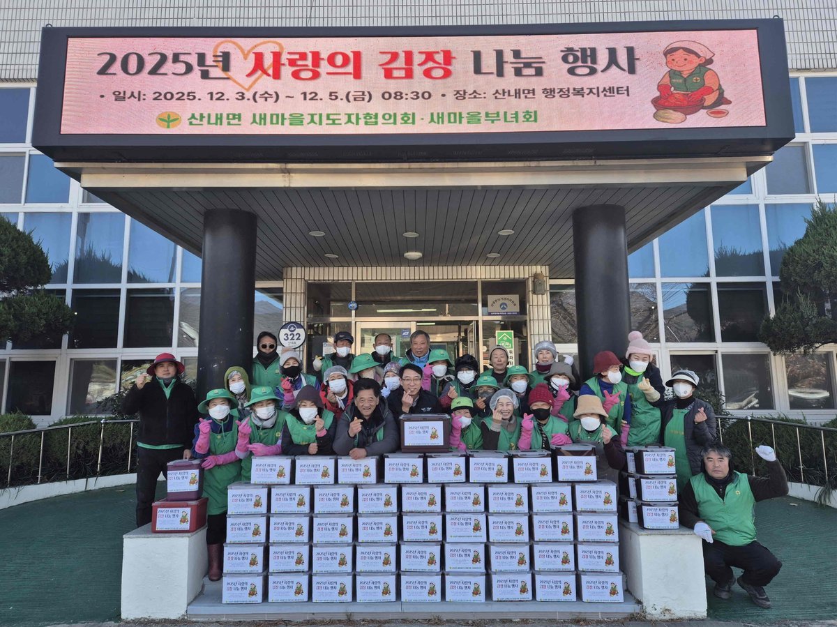 조정제 산내면장은 “이번 김장 나눔은 이웃 간의 정을 나누고 공동체의 따뜻함을 확인하는 뜻깊은 자리였다”라며 “행정에서도 취약계층 지원과 복지 향상을 위해 적극적으로 노력하겠다”라고 전했다.