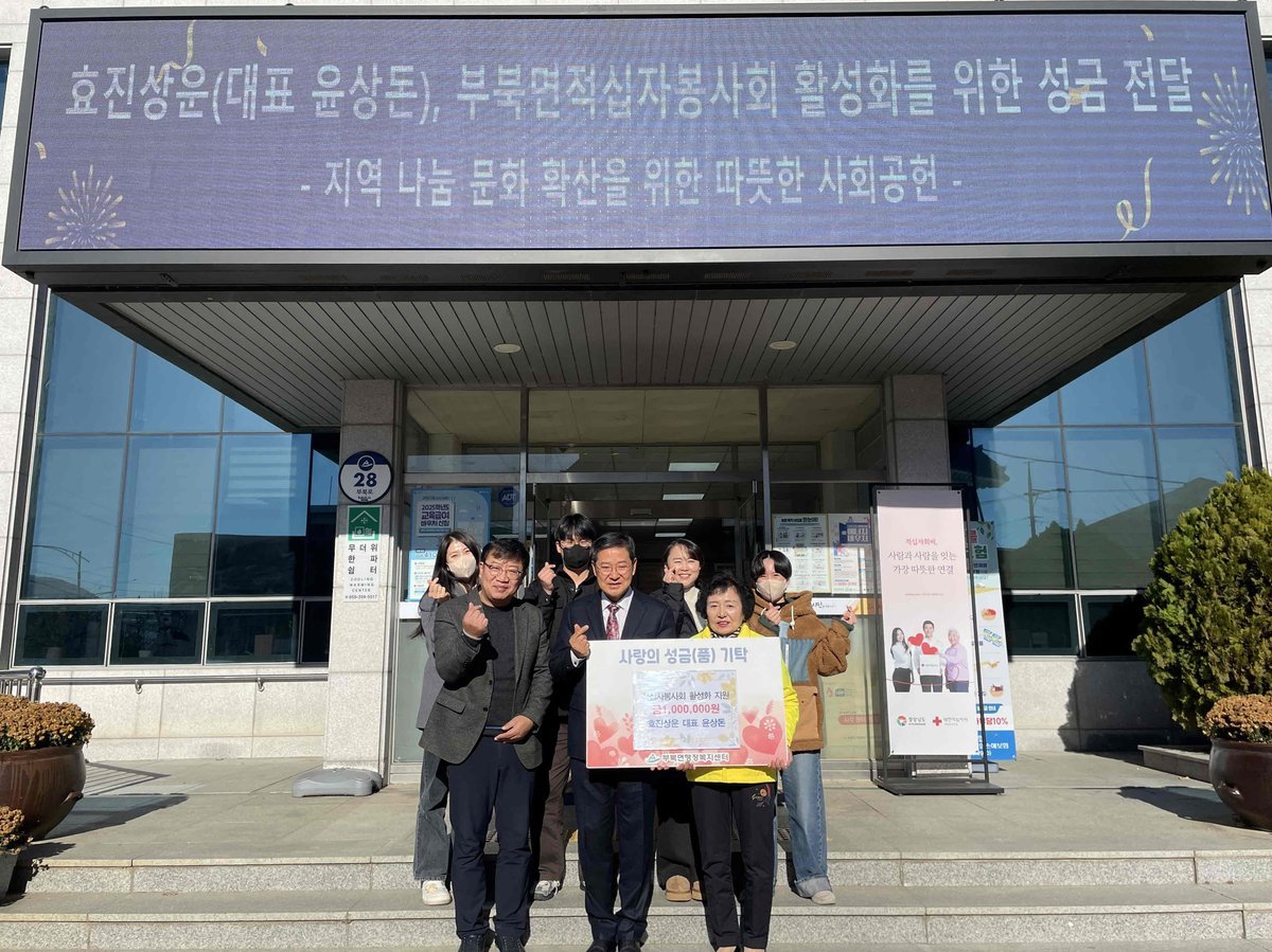 [한국Q뉴스] 효진상운 윤상돈 대표는 5일 부북면 행정복지센터를 방문해 취약계층 지원과 부북면 적십자봉사회의 활성화를 위해 성금 100만 원을 기탁했다.