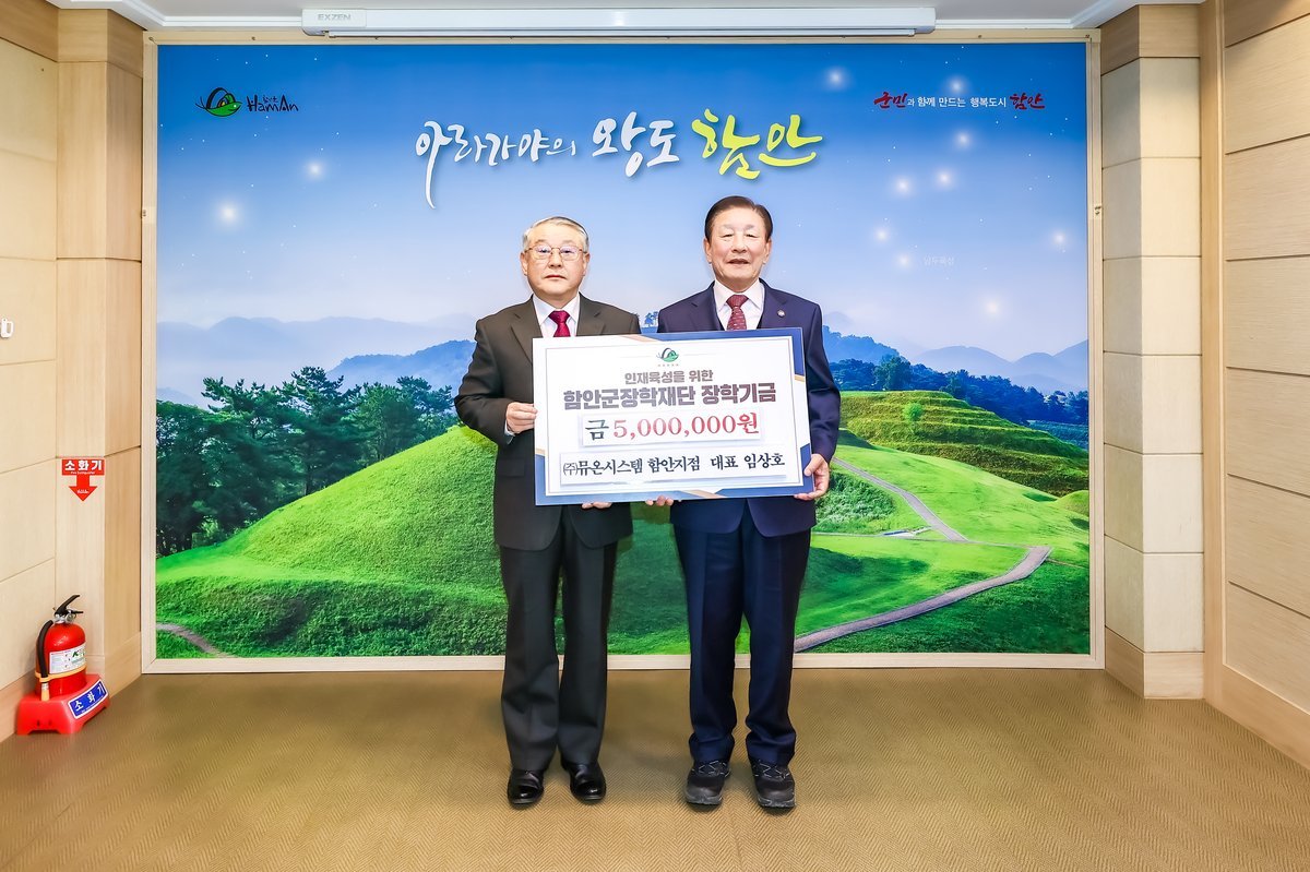 [한국Q뉴스] 함안군장학재단은 ㈜뮤온시스템 함안지점이 5일 장학기금 500만 원을 기탁했다고 밝혔다.