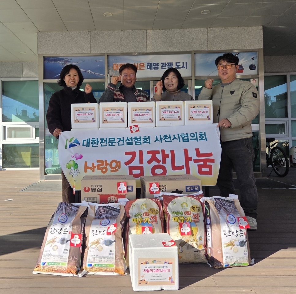 [한국Q뉴스] 대한전문건설협회 사천시협의회는 지난 4일 직접 만든 김장김치와 라면 백미 등 사랑의 물품을 벌용동행정복지센터에 기탁했다.