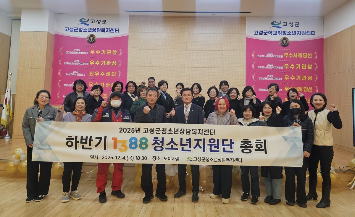 [한국Q뉴스] 고성군이 운영하는 고성군청소년상담복지센터는 12월 4일, 고성군청소년센터 온 1층 모이자홀에서 1388청소년지원단 하반기 총회를 개최했다.